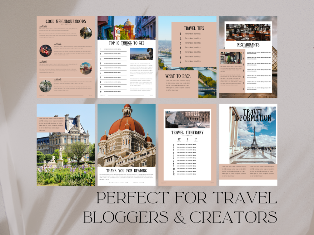 Whether you're a seasoned travel writer, aspiring blogger, travel influencer, a travel agent or someone with a passion for documenting your adventures, this template is your ticket to creating a stunning and professional travel ebook.